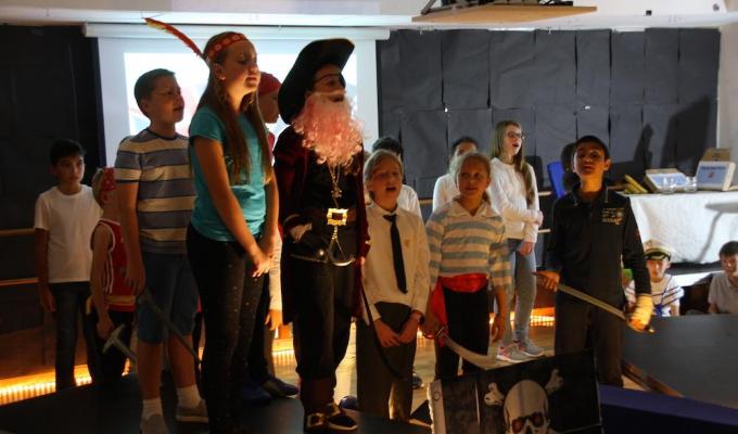 In a very short space of time, the children in Years 5 & 6 teamed up to put on a dazzling, exciting and swash-buckling production of ‘Pirates of the Curry Bean’.