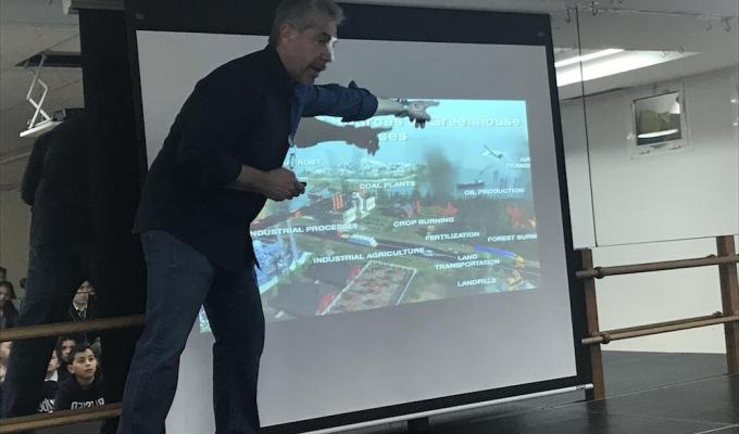 Pancho Campo, que ha organizado varias conferencias sobre el Cambio Climático y ha trabajado con el ex vice presidente americano Al Gore, también nos visito y le hablo a los niños mayores sobre los pequeños cambios que pueden hacer para poner su granito de arena.